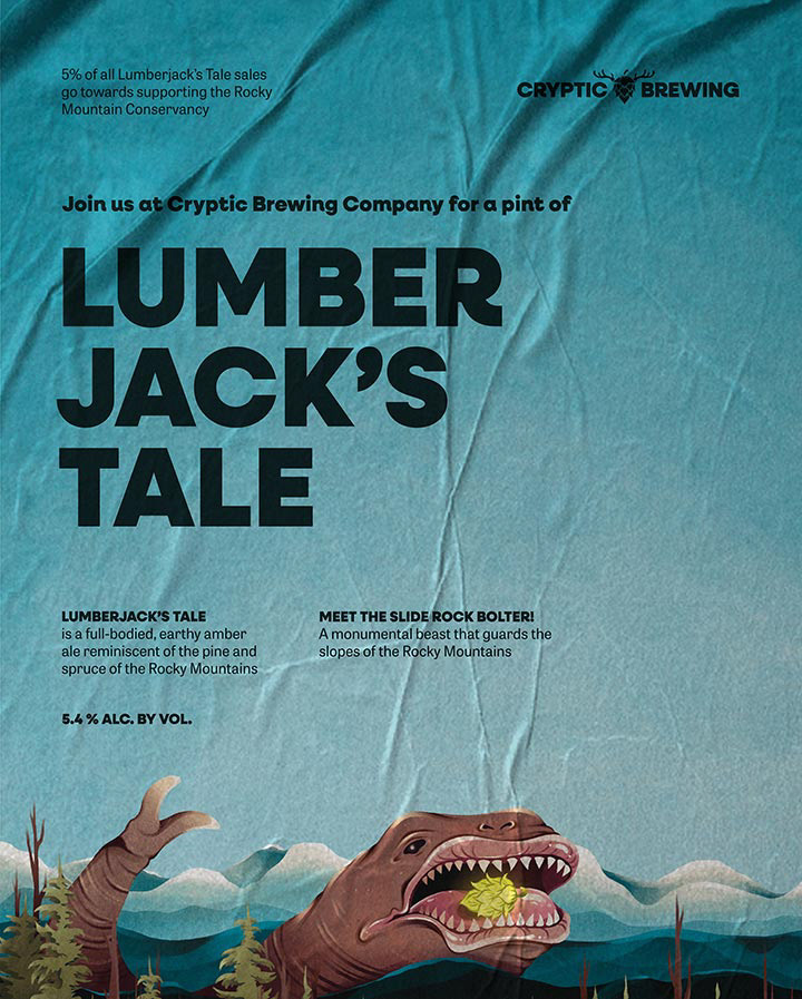 Cryptic Brewing Company is a brand that dives into the realm of a few of my personal interests: The fascinating lore of cryptozoology, packaging design, quality beer, and American National Parks. Both the name and kind of each beer were playfully considered to reflect the nature of their creature, whether it’s a golden lager for a flighty apparition, or a floral IPA for a pungent swamp dwelling critter!